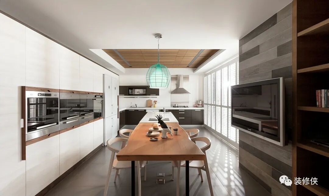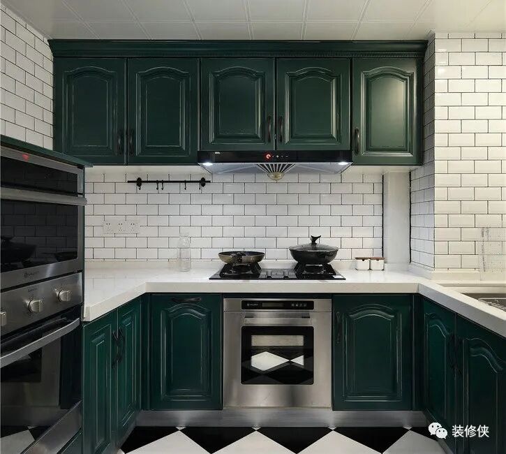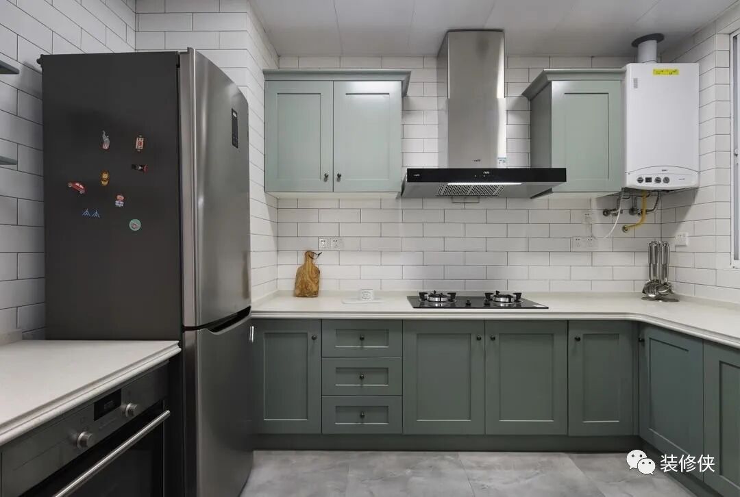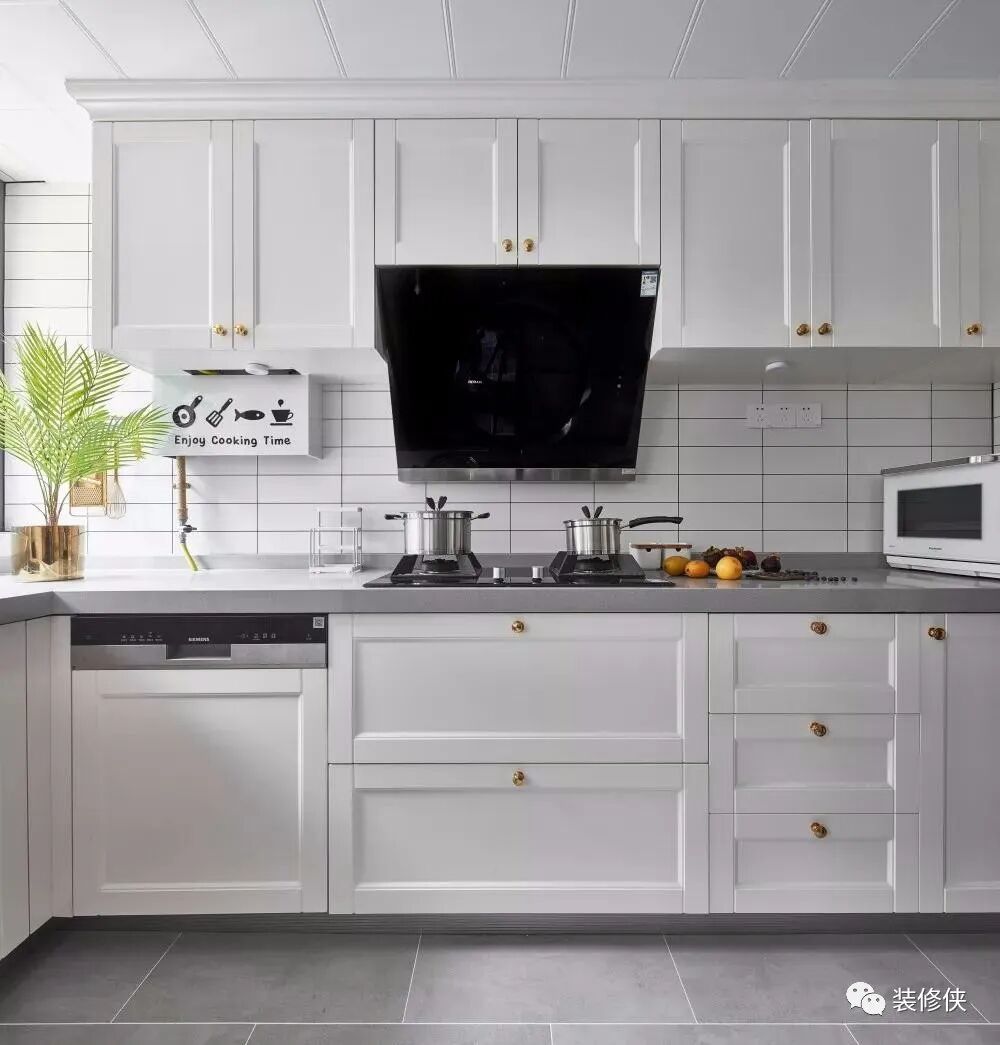 在我们的印象当中,厨房的墙面必须要选择贴瓷砖的方式,因为瓷砖防水防油,清理起来比较方便。