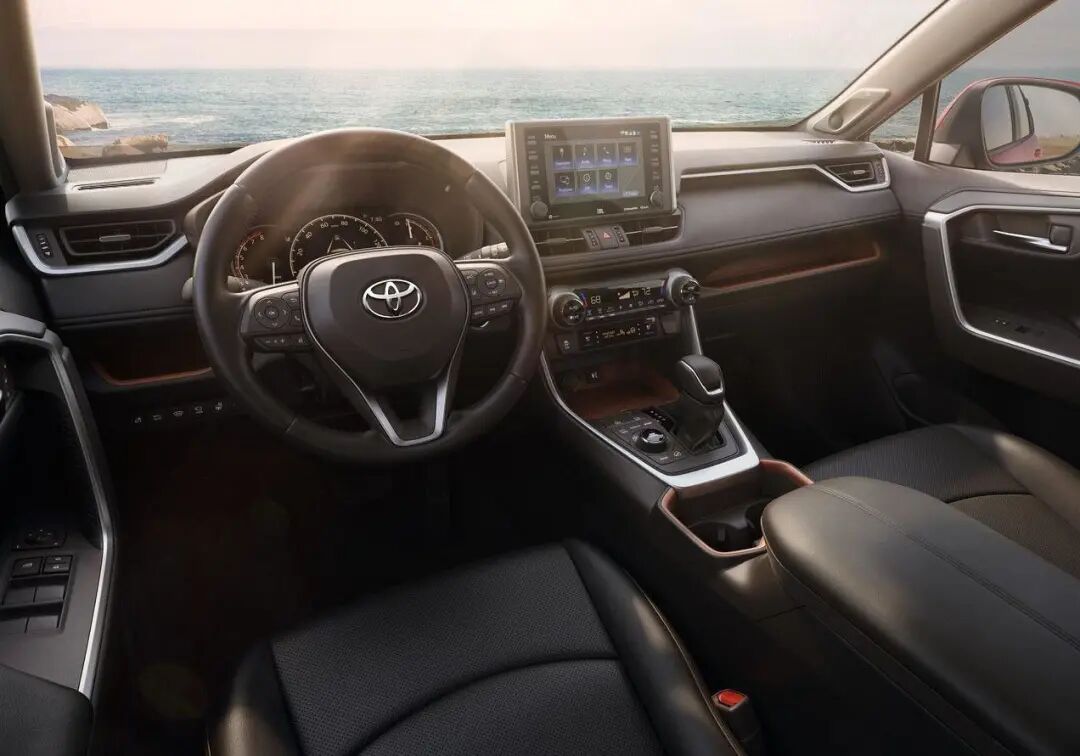 在中控部分,新款陆巡也是继续走起了套娃路线,各种设计元素基本与丰田新一代的SUV车型如出一辙,除了拥有更多的功能按键以外,中控整体充满了之前备受诟病的RAV4“大背投电视”的既视感。
