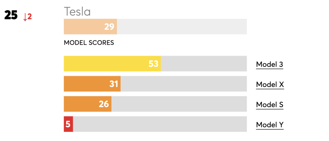 而排在倒数第二的特斯拉就没什么好说的了,从来都不以质量见长,或者说做工一直以来都是最大短板的它排名靠后也是理所当然的事。不过,作为最新车型的Model Y竟然拥有最低的评分,看来想要它们在可靠性方面有所长进,还真不是一件容易的事啊......