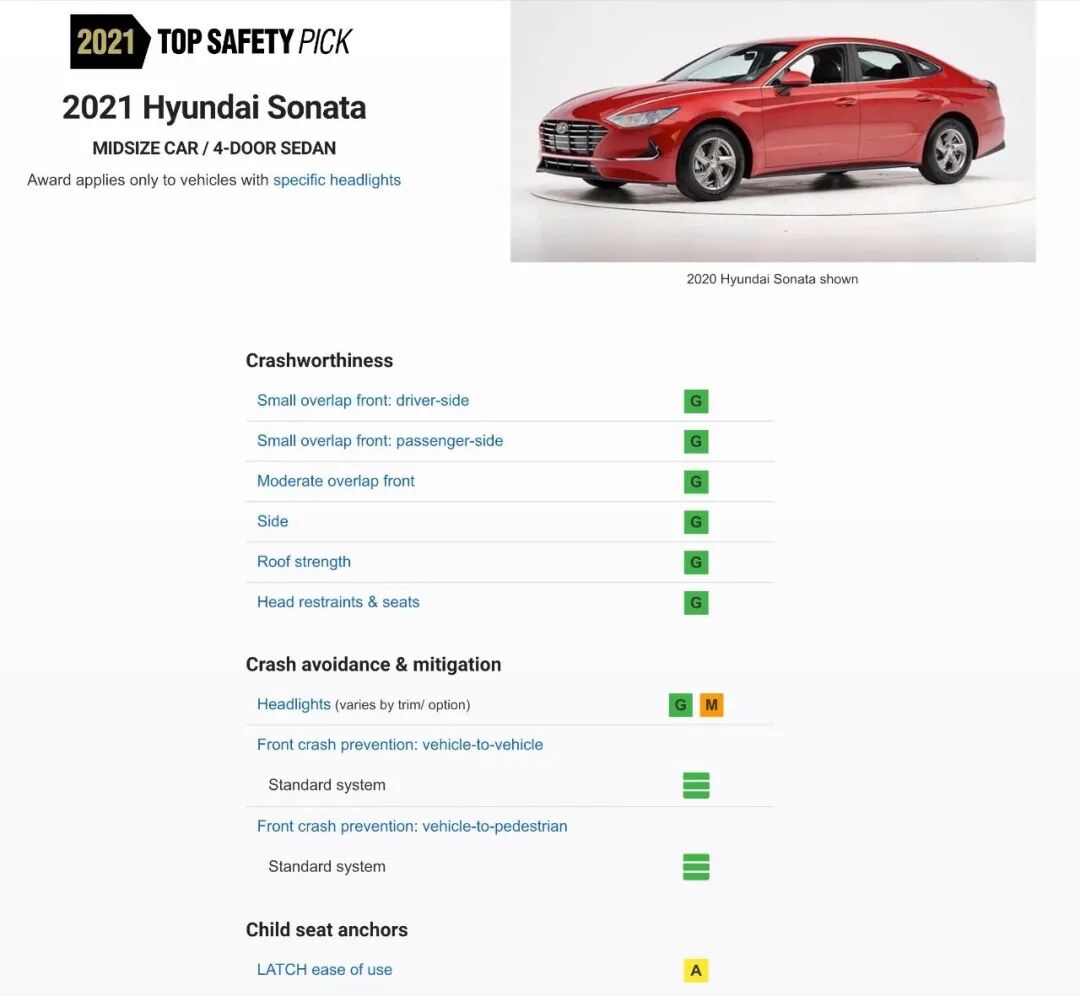 接连在碰撞测试中掉链子,是现代没有能力设计出一款安全的车型吗?并非如此!查看第十代索纳塔在美国的测试成绩我们可以得知,在号称全球最严格的IIHS碰撞安全测试中,除了低配车型的大灯照明效果获得了差评以及儿童安全座椅接口的易用性有所丢分以外,在各项主被动安全测试中索纳塔均获得了高分评价,就连副驾驶侧25%偏置碰撞也同样得到了好评。
