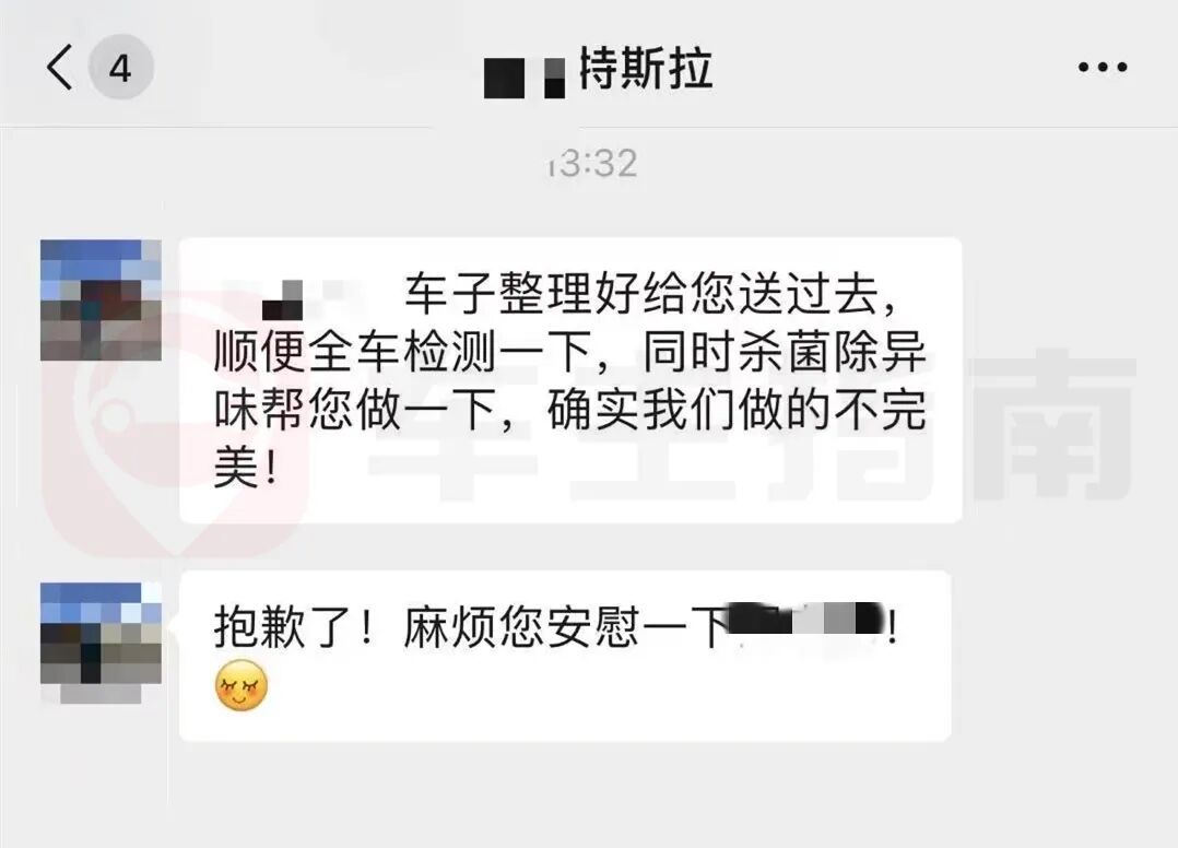 在车主的沟通“自己家别的品牌车型也没这种事情发生”后,特斯拉工作人员表示“我们说的是特斯拉,为什么要提其他品牌”,而后甚至给女车主甩脸色,表示自己“已经下班还在处理你的事情”。