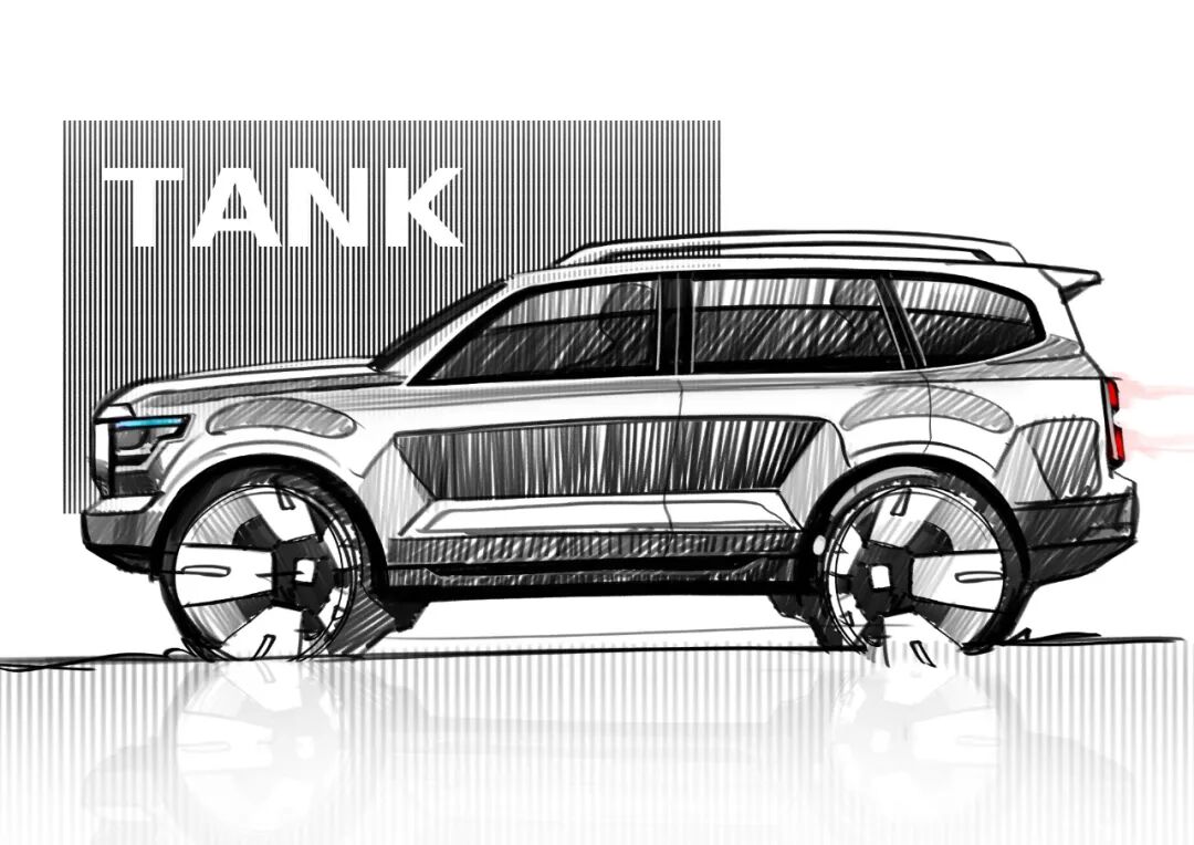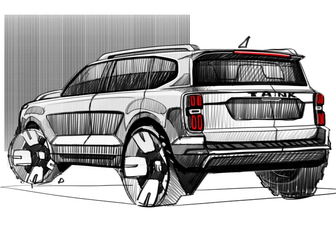 近日,一份坦克600的设计手稿被曝光,从设计稿上看,定位为中型SUV的它将会有着比坦克300更加硬派的外观设计,车头六边形的巨大格栅以及棱角分明的车身包围甚至会让人想起装甲车。