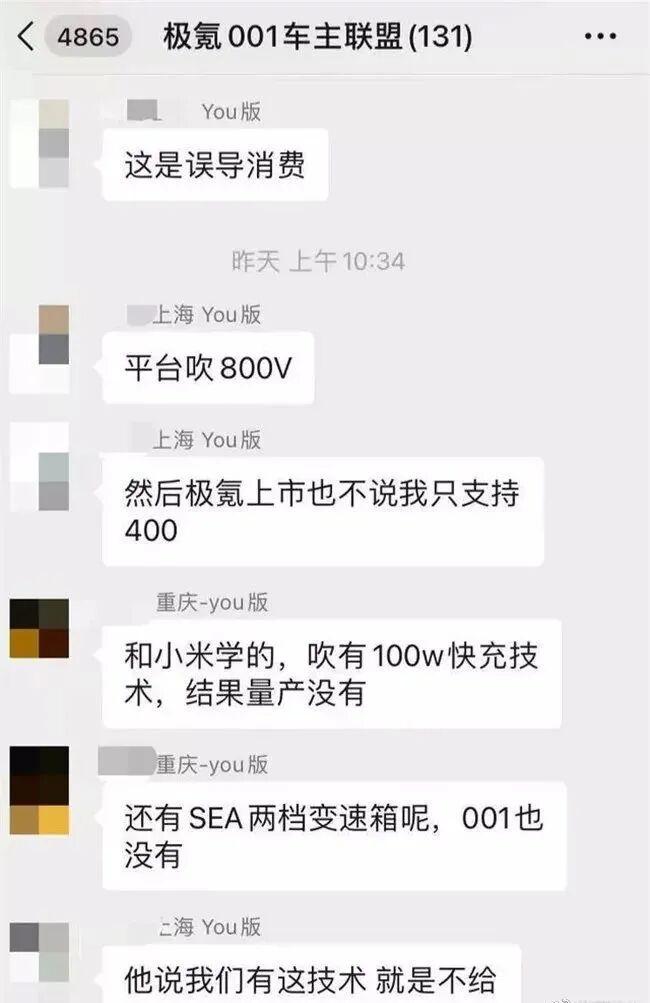 除了涨价以外,车主们还反映极氪001部分此前宣传的标配配置,竟然悄悄地变成了选配。比如低配车型的隐私玻璃被取消,原本标配的可变全景天幕变成了选装配件,副驾驶的座椅通风也成了单独的选装项目。像是黑化套件需要单独选装这种“小case”就算了,最让人不能忍的是,之前极氪大肆宣传的SEA浩瀚平台800V超级充电系统,在极氪001上缩水成了400V快充,换句话说,之前宣传的充电速率,在极氪001上显然也是不能达到的。