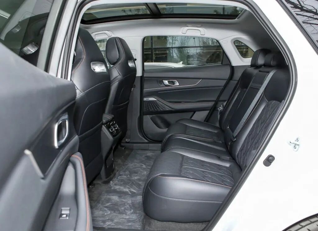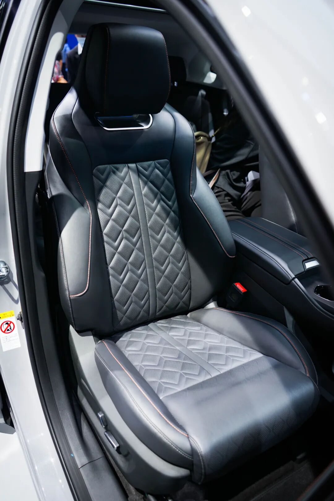 而在诸如内饰设计这类软实力中,自主品牌自然是强项,无论是那大大的全液晶仪表、分层布置的中控大屏还是设计感满满的挡杆控制区域,其表现都一点不逊色于豪华品牌,在高配车型上甚至还出现了Nappa真皮材质包裹的座椅。
