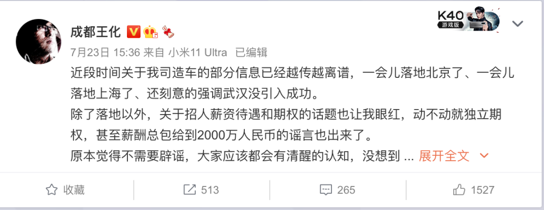对于小米落户的种种传闻,他们的公关经理王化也在微博上“辟谣”,但是里面提到了北京、上海、武汉,唯独没有说到合肥,这反倒是让网友们浮想联翩。