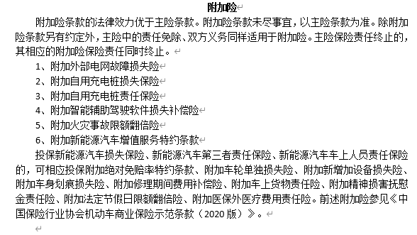 在公布的具体细则中,最引人注意的就莫过于那几条前所未有的新能源车附加险了。比如关乎于充电的就有外部电网故障损失险、自用充电桩损失险、自用充电桩责任险等,能涵盖“外部电路导致车辆损毁”、“外部因素导致充电桩损毁”、“充电桩故障导致第三方伤亡或财产损失”等方面,能将车辆充电时的风险降到最低。