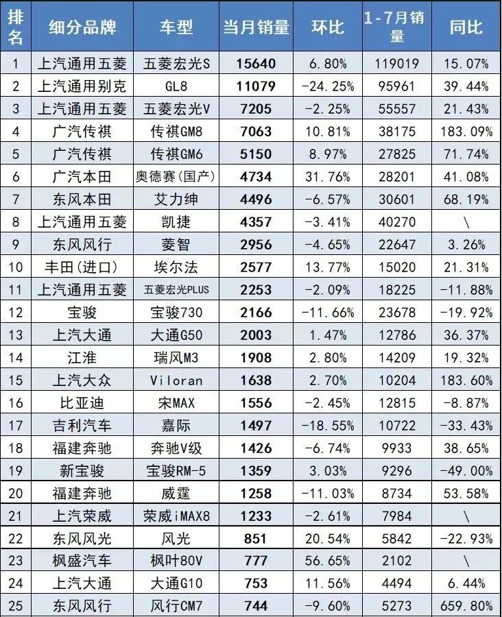 在7月份MPV销量细分榜单中,丰田埃尔法以2577辆的销量,排在了总榜单的第10位,它甚至比宝骏730和五菱宏光PLUS卖得还要好。