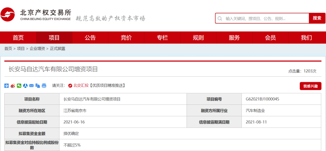 而早在今年的6月份,长安马自达就已经通过增资的方式出让了5%的股权,具体交易信息也早已在北京产权交易所作了披露。
