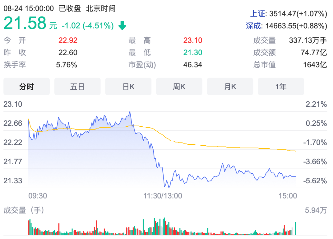 在昨日大会召开,官宣新品牌以后,长安汽车的股价一度有了小幅拉升,然而在他们公布了阿维塔新车E11的预告图以及长安全新电动轿车C385以后,他们的股价就开始了一路的下跌,截止收盘前下跌已经达到5%,而在今日(25日)开盘以后,股价更是进一步下挫。