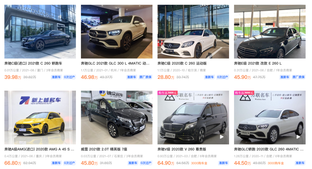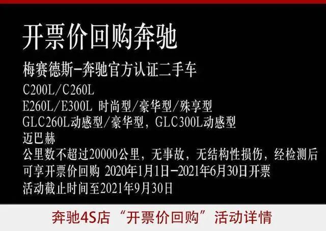 无独有偶,除了宝马以外,有奔驰的经销商同样也开展了类似的“原价回购”活动,比如杭州的这家奔驰4S店,针对2021年上牌且里程不超过5000公里的E300L车型甚至能提供超过发票价的价格回购的服务。