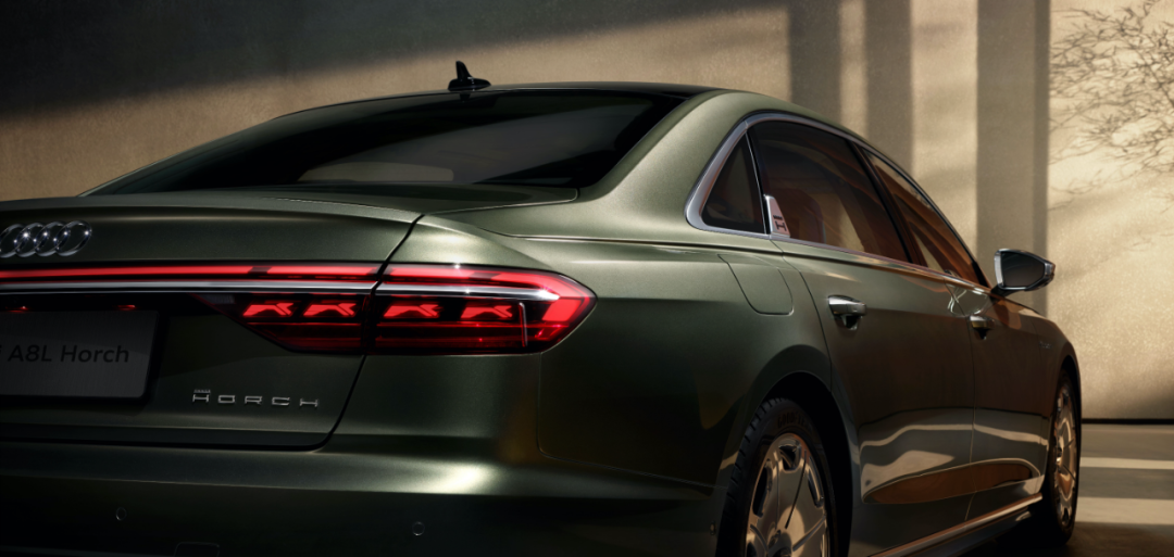 而除了轮毂以外,在翼子板、车尾以及C柱上,这台特别版A8L都拥有许多的“霍希元素”。