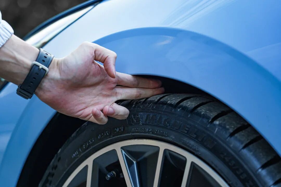 巨大的19寸轮圈放在这么一台A级车身上,显得尤其的夸张。245的胎宽、35的扁平比的定制版米其林PS4再加上勉强塞得下两根手指的悬挂高度,让伊兰特N的拥有宛如改装车的气质,再加上360mm直径的刹车盘,就算是只看到轮子,都能让你知道这不是一台好惹的车。