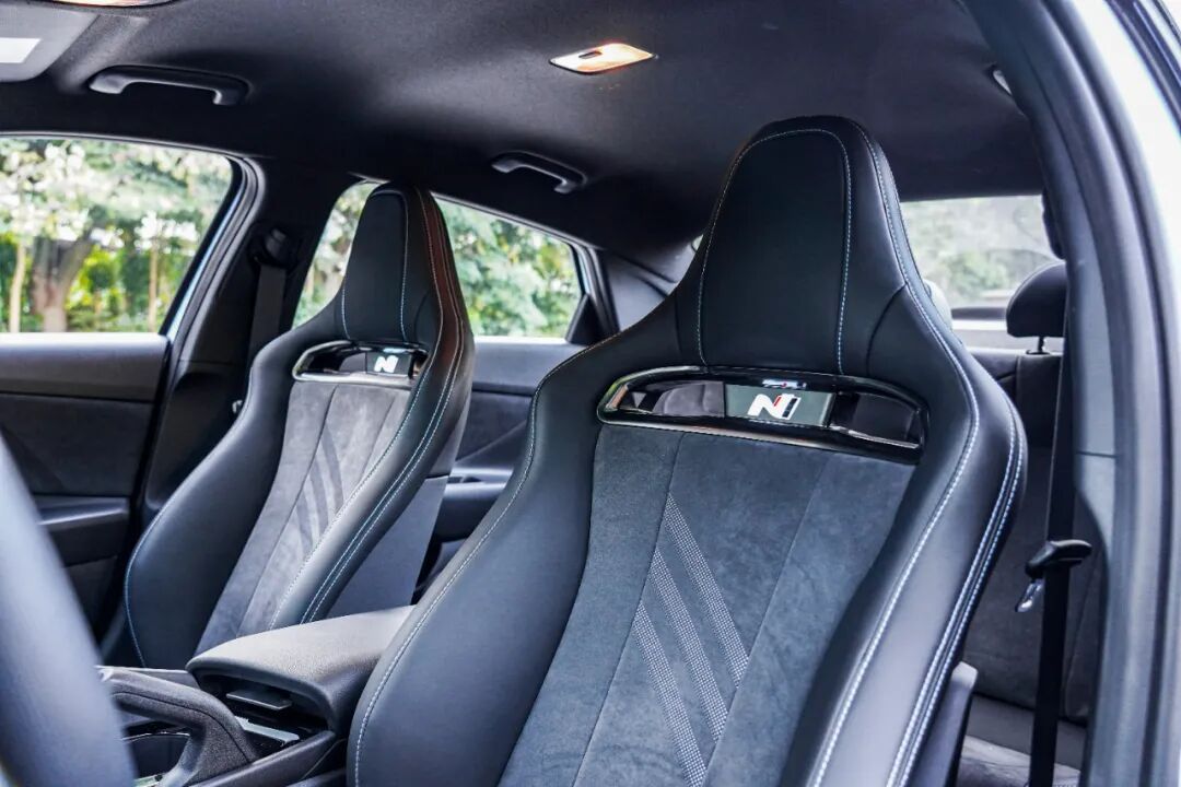 再比如,伊兰特N的前排座椅、方向盘等地方的用料都极其高级,设计也是相当地考究,一体化桶椅上方的N徽标甚至还会发光。但是除此以外,在内饰其余部分的用料上却充满塑料感。很明显,现代明白会买这台车的人都是那种把重点放在驾驶上的人,把成本花在刀刃上,是这台车给我最大的感觉。