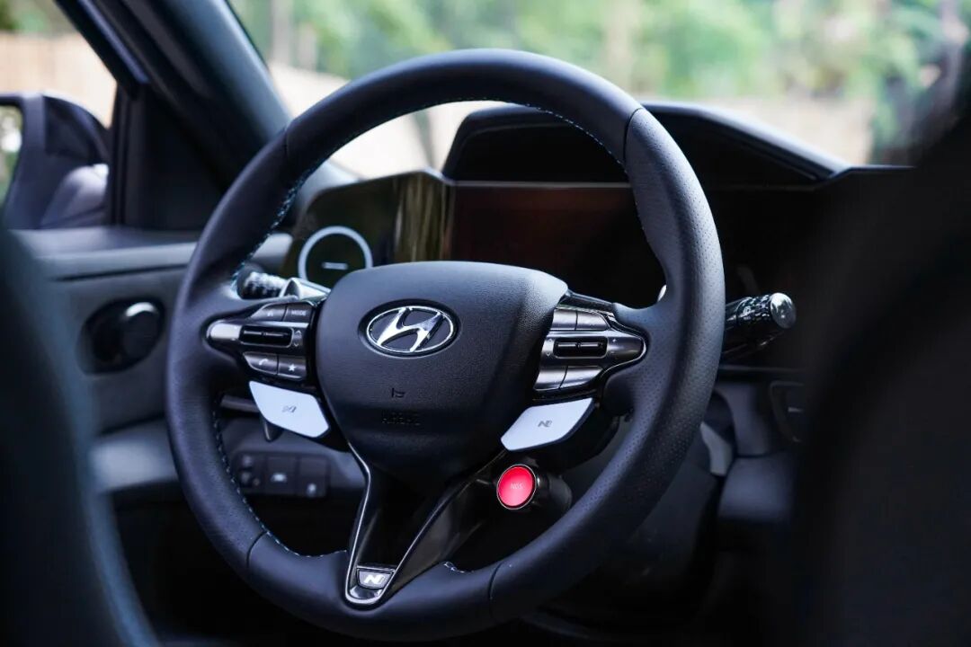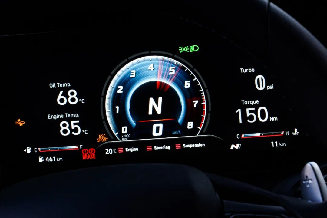 同时,也正是由于这台车为韩版车型,它也没有办法在中国的开放道路上合法行驶,因此这次对于这台车的体验主要还是以静态以及封闭场地为主。不过即便只是简单的接触,我们都能清晰地感觉到伊兰特N上散发出来的那种“硬核”,绝非领克03+又或者高尔夫GTI之流能比得上的。