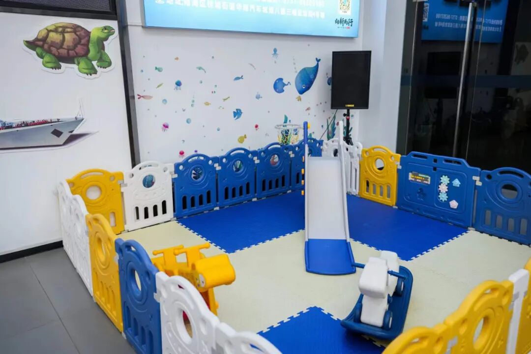 当然,除了这些提升品牌形象的装饰性布局以外,在功能分区上,海洋网4S店的标准也同样做到了超高的水准。除了常规的展车布局以外,店内还设有儿童活动区,水吧台,视频播放区等,能提升所有进店客户的实际体验。