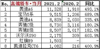 说到高端车市场,奥迪在二月份可谓是大获全胜,他们旗下的中大型轿车A6夺得了高端轿车销量榜的头名,Q5则是高端SUV销量榜的头名。