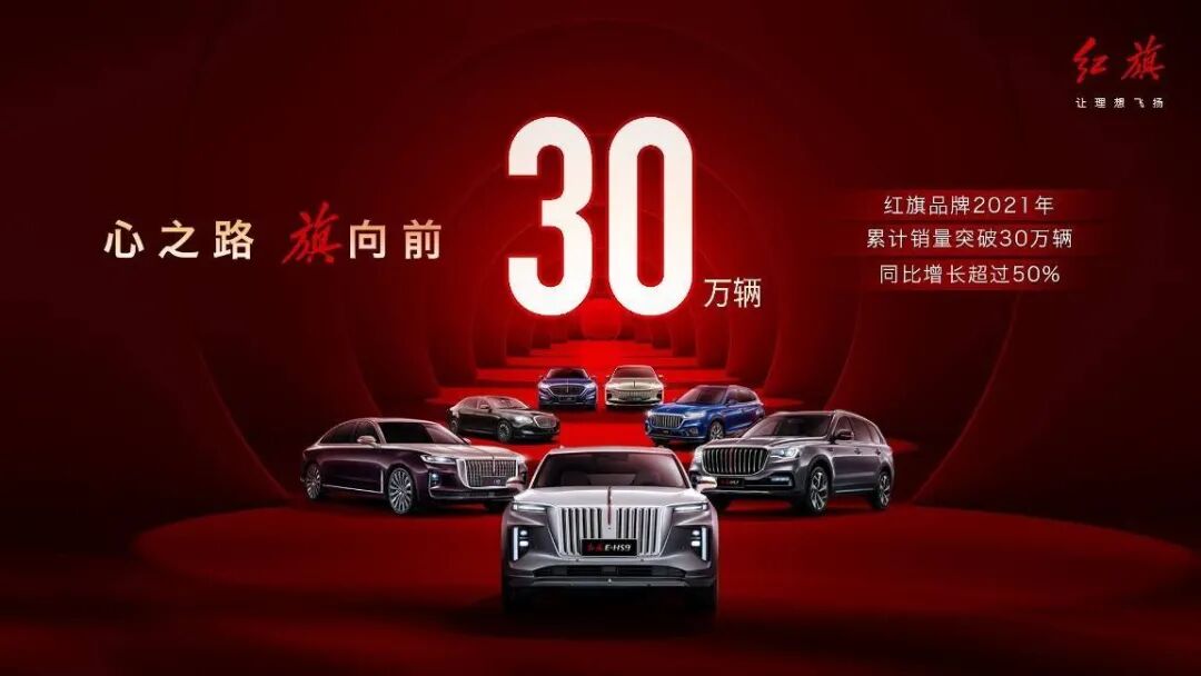 根据一汽官方公布的“销量”,在2021年里红旗品牌累计销量成功突破了30万辆,同比增幅更是超过了50%。不过,官方数据为了好看肯定是作了一些“美化”的,根据可查的销量显示,红旗品牌在2021年全年销量应为299674辆,实际上险量则约为27.2万辆。