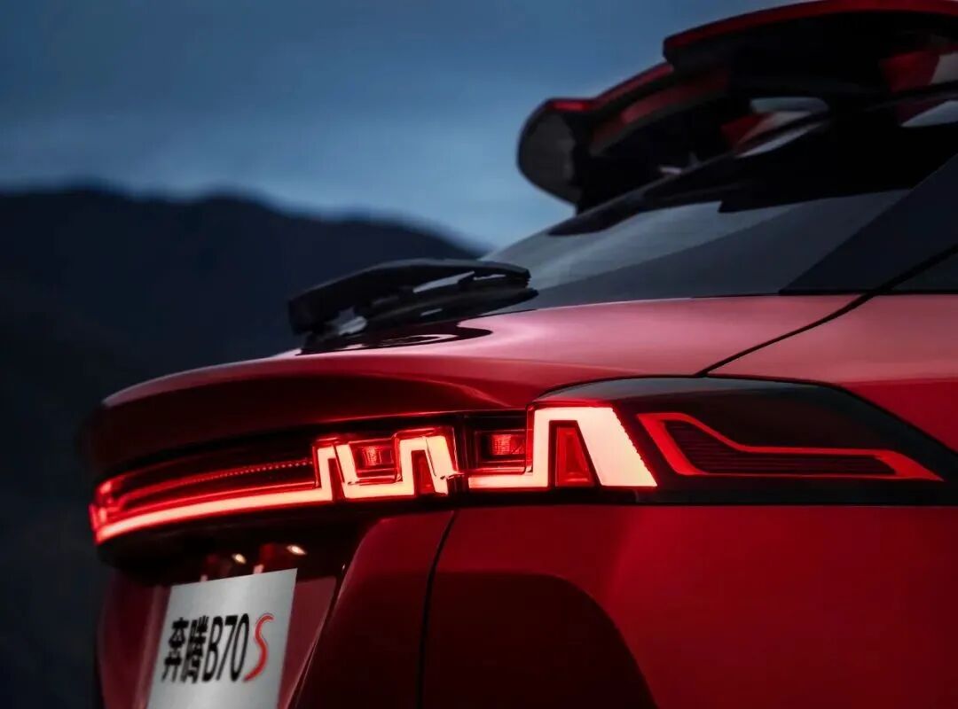 值得一提的是,虽然B70S的前脸设计有些一言难尽,但是它车尾的整体观感却还是挺有味道的。贯穿式的尾灯在如今已经不罕见,不过尾灯组上那宛如城墙一样的设计确实挺有新意的。