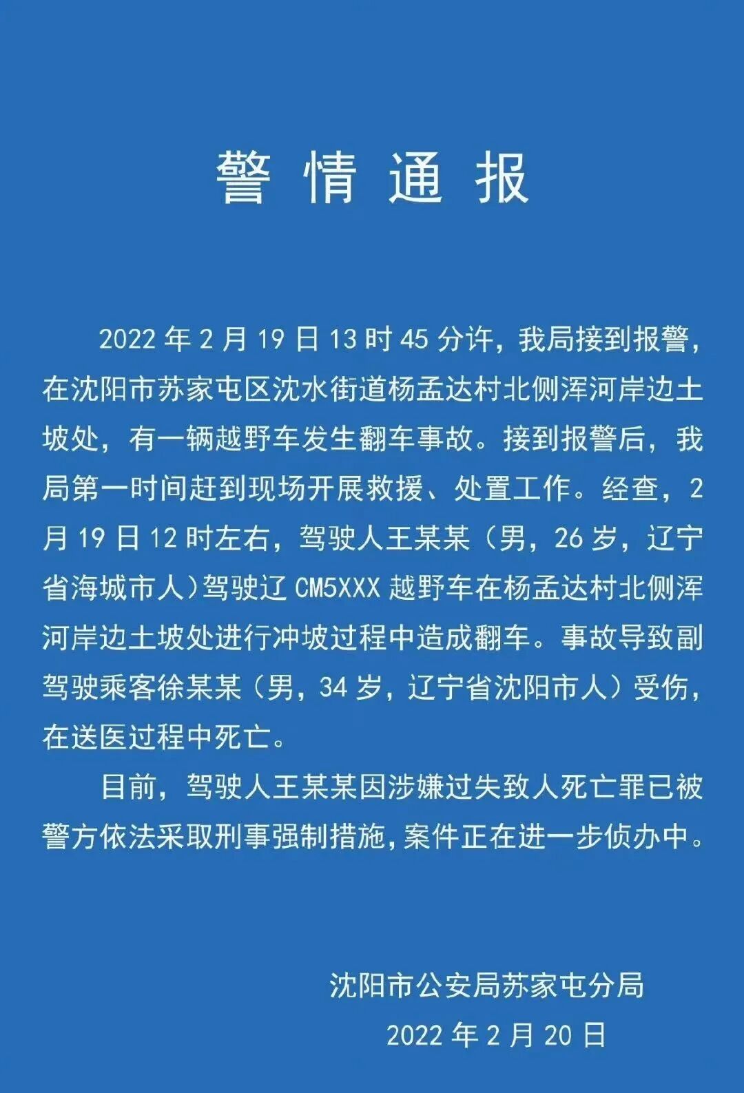 过后,沈阳市公安局发布公告,越野车驾驶人王某某已经因涉嫌过失致人死亡罪被警方依法采取了刑事强制措施。本想撒个野,最终车没了,身上背负着一条人命,而且还要坐牢,这真的值吗?