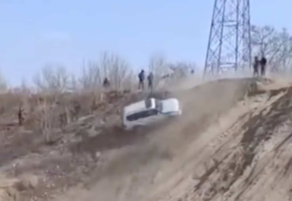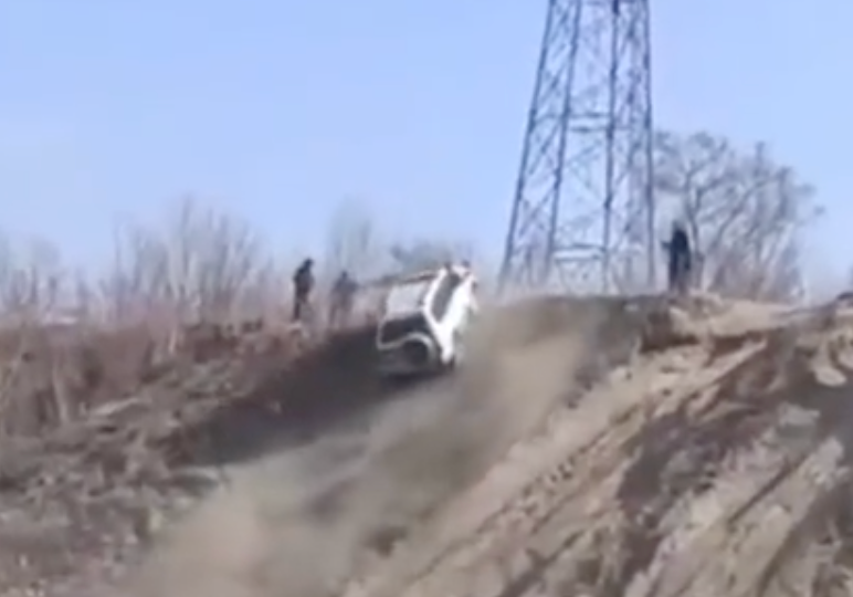 在视频中,事故车辆高速冲向一处又长又陡的土坡,就快要到达坡顶的时候,车辆失去动力开始下溜,但是由于驾驶员缺乏经验,在下溜的过程中未能让车子保持直行,导致车辆翻滚了数圈以后掉落坡底。