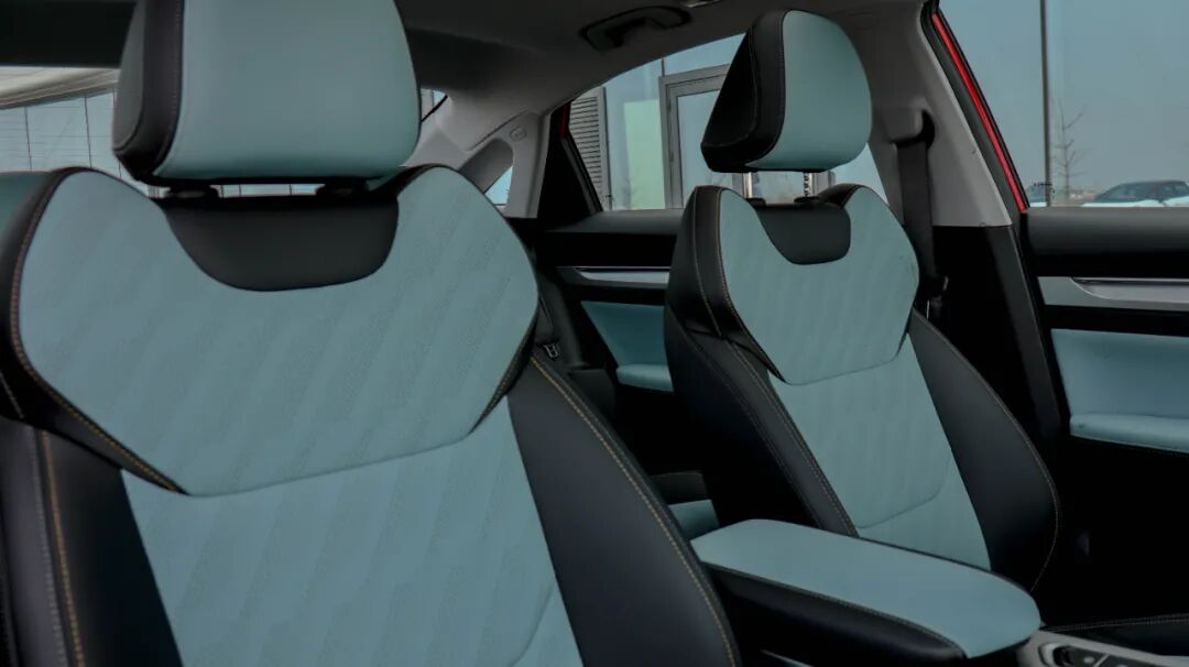 进入到车内,首先映入眼帘的就是这套双色拼接的内饰,只要是触手可及的地方,都用上了皮革包裹,甚至连乘客膝盖经常会碰到的中控台侧面,也被贴心地缝上了软质皮革,来提高乘坐感受。