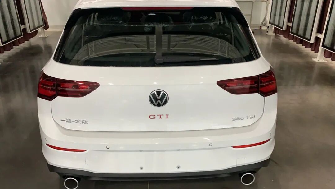 而普通版高尔夫车尾LOGO下方的英文字母也被换成了更具气势的红色“GTI”字样,根据之前曝光的谍照,这仨字母在白色的车身上还挺好看的。