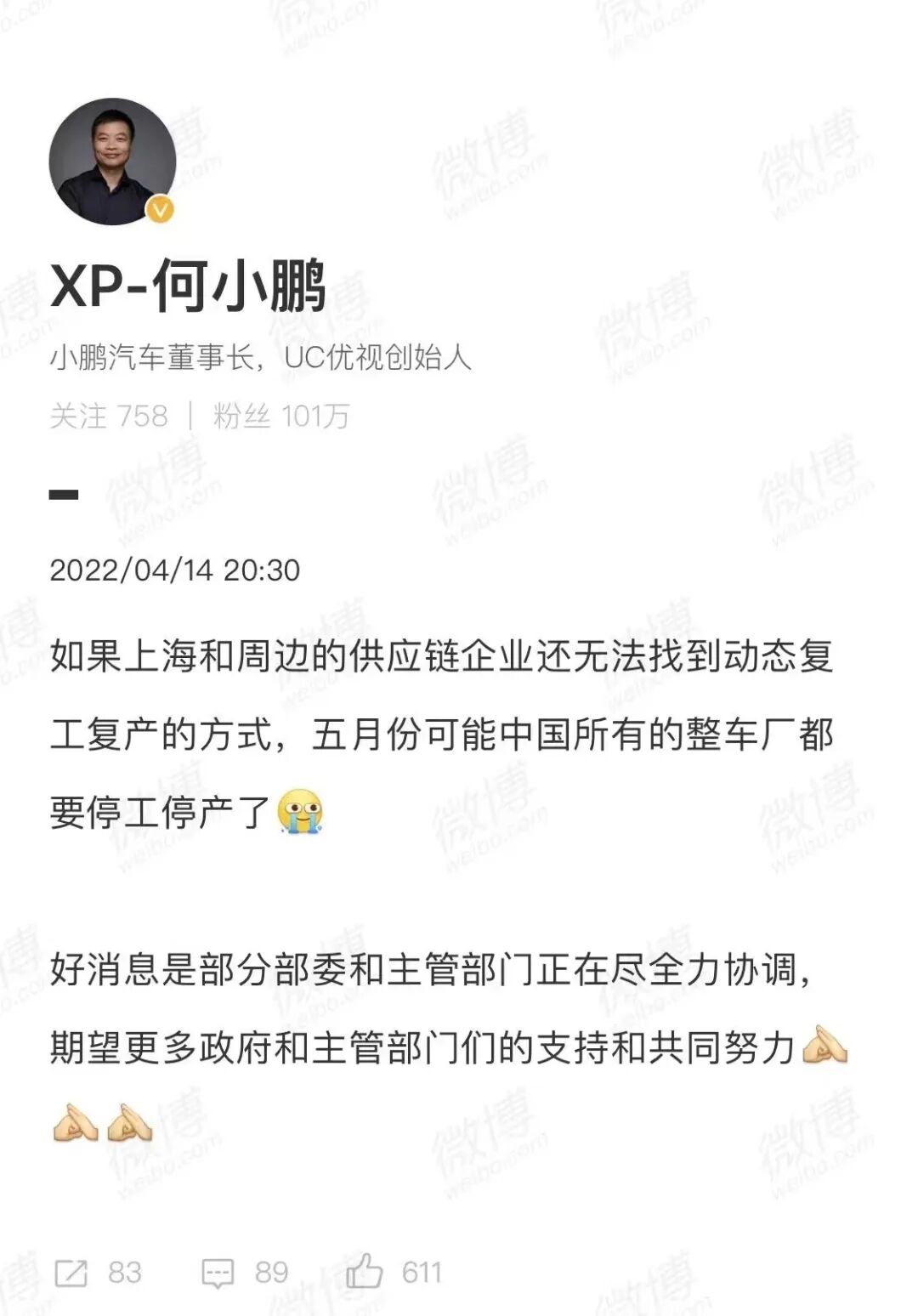 在上个月中,现在负责华为汽车项目的余承东以及小鹏汽车的CEO何小鹏相继表示,上海疫情对汽车行业的冲击要远比我们想象中的严重,假如上海及周边的汽车相关产业无法尽快复工,那5月份可能全国的汽车生产都将面临停滞。