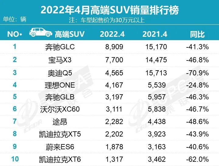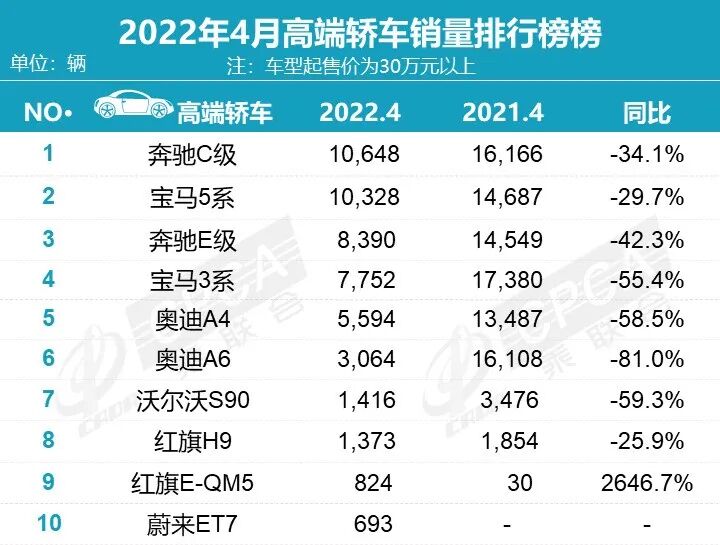 不过不难看出的是,不管是轿车还是SUV市场,在4月份高端车市场还是出现了比较明显的整体萎缩。毕竟在供应链受到疫情严重影响的情况下,配置更高、工艺更复杂的高端车型显然更容易受到零部件短缺的冲击。