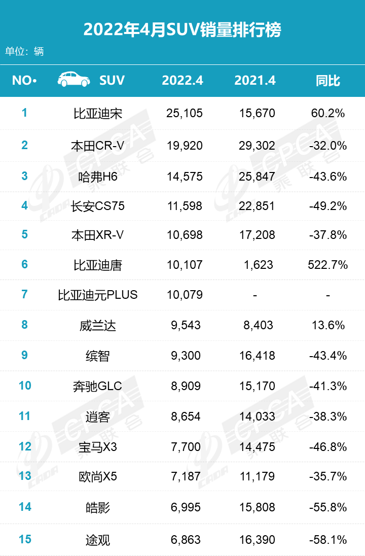 同样的,在SUV市场比亚迪目前最热门的车型宋更是呈现出了一副统治的姿态,在4月份比亚迪宋一共卖出了25105台,一举成为了SUV市场的“新王”,而在其身后的则是东风本田的CR-V。