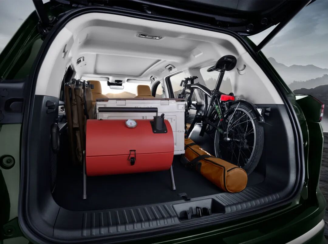 在取消了第三排的座椅以后,揽月5座版的尾箱空间就变得相当奢侈了,而为了进一步增强尾箱的拓展能力,揽月5座版的尾箱不仅配备了独立的12V电源接口,甚至还提供了更为方便的220V电源插座,以满足时下在年轻人中流行的露营生活。