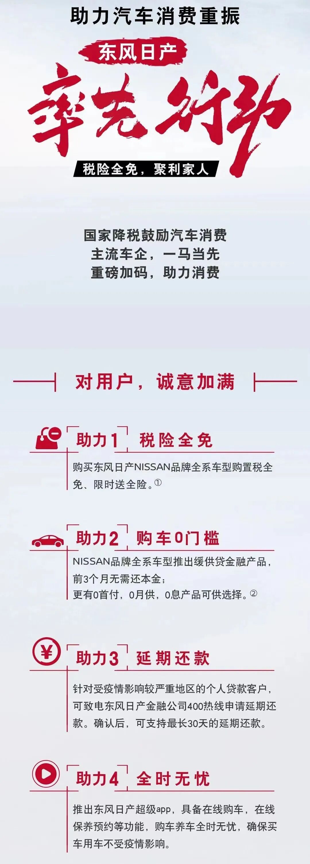 而在这只“有形的大手”鼓励之下,车企们的反应自然也是相当迅速。就在政策公布后不久,就有多家车企宣布跟进优惠政策,比如东风日产,就宣布将对旗下除新奇骏以外的全部车型,免去全部购置税,并限时赠送全险。