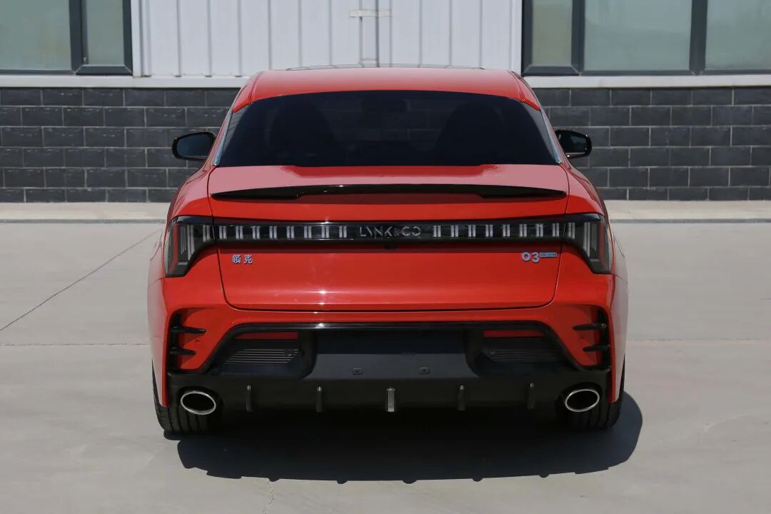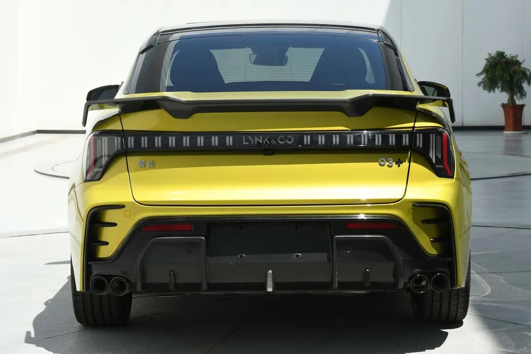 除了车头以外,新款03车系的车尾同样也有着不少的变化。首先,贯穿式尾灯的样式全面向领克目前的旗舰车型领克09看齐,密密麻麻的竖状LED在点亮以后辨识度一定是不会低的。同时,保险杠下方各种空气动力学装饰也变得更加高调,在03+上我们还能看到双边双出排气得到了保留,同时像碳纤维尾翼、大尾翼等配件都能够在03+上选装。