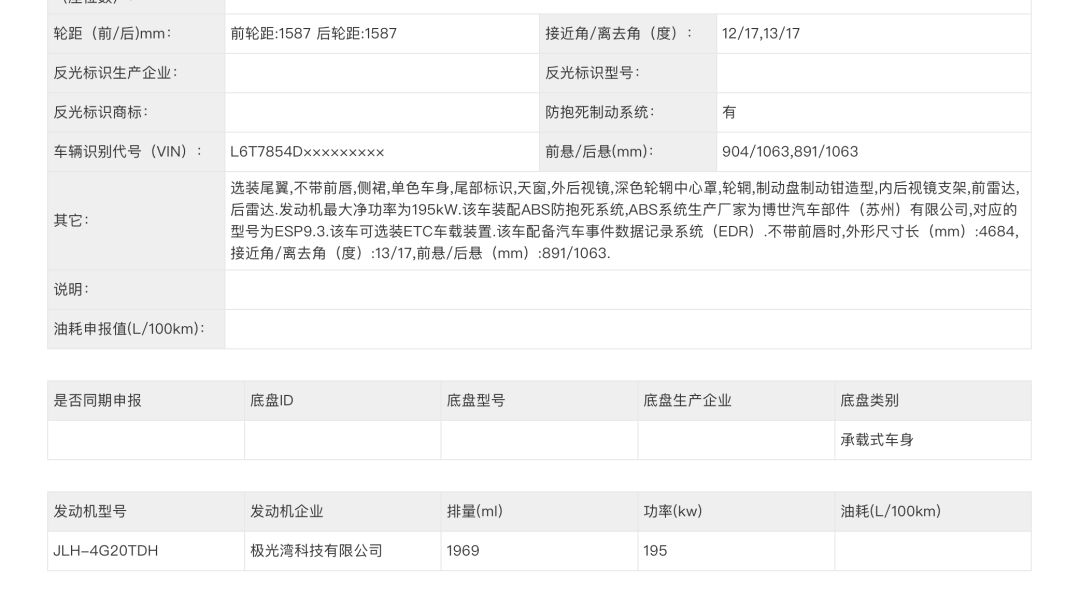 而在它之上,我们还能看到一款同样搭载2.0T发动机,但是最大功率达到187kW(250马力)的车型,按理说这个动力数据已经是属于03+的范畴了,但是在申报图中它却仅仅是一款普通车型,车身上也并无任何“+”的标识。