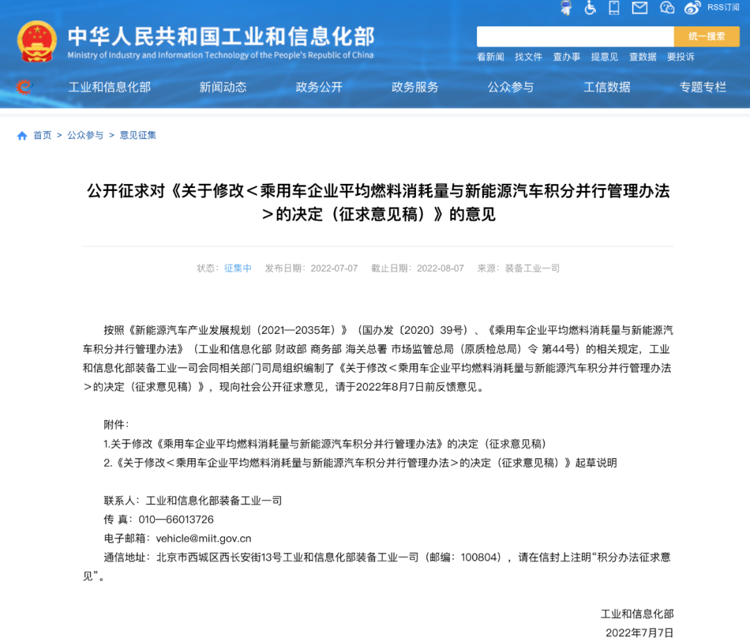 就在7月7日,工信部就发布了《关于修改<乘用车企业平均燃料消耗量与新能源汽车积分并行管理办法>的决定(征求意见稿)》,里面关于新能源车积分的计算方式不仅出现了不少的调整,而且还首次引入了“积分池”的概念。