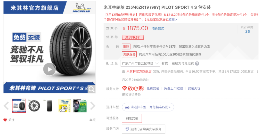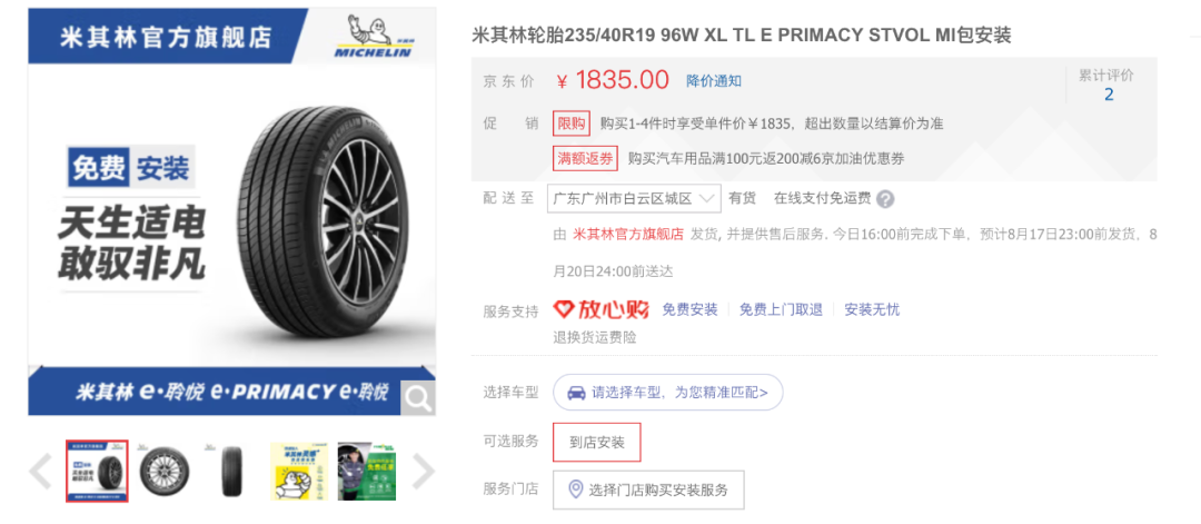 从明面上看,这确实是解决了电动车轮胎的一大痛点,但是,这都是有代价的。从某电商平台上我们可以看到,一条搭载了上述那一大堆“高科技”的米其林e·PRIMACY轮胎,在价格已经直接看齐了同尺寸的米其林PS4S轮胎。