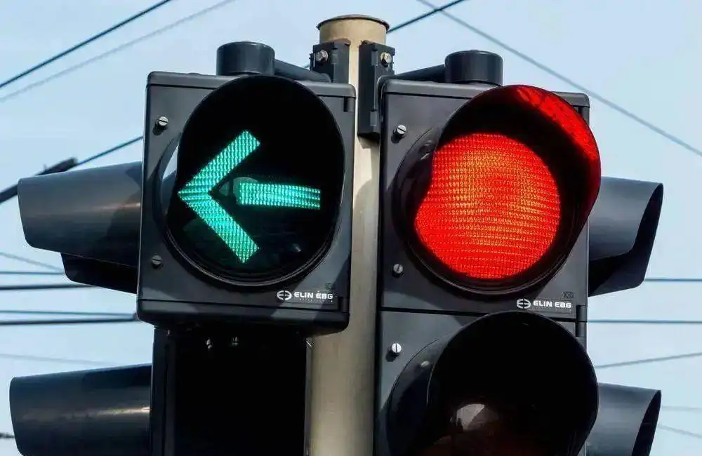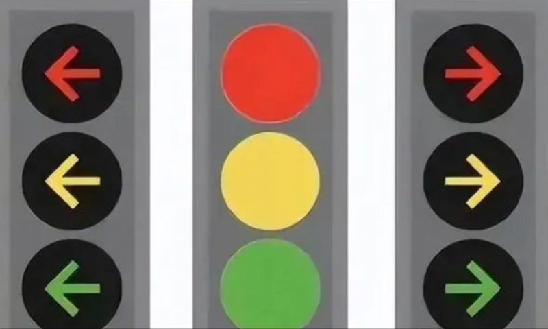 在新国标红绿灯里,不再有指示直行的箭头,而是统一用圆灯表示直行,而左转与右转则是分别用左箭头、右箭头来指示。