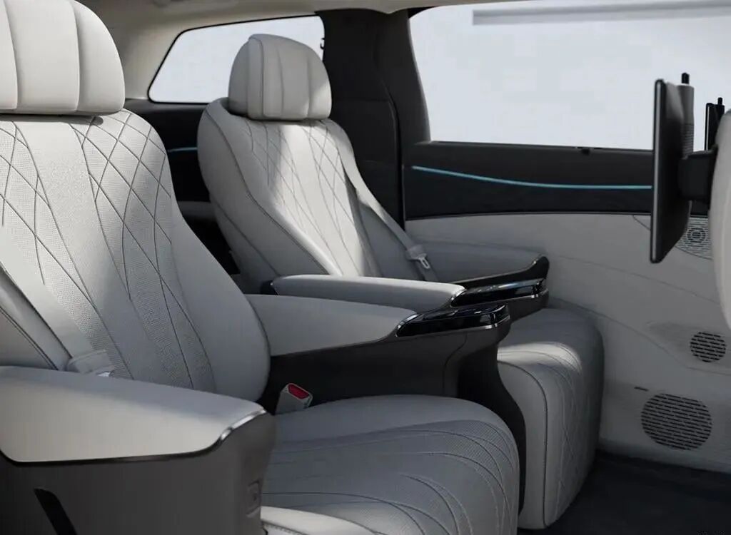 布置在中排的两张“零感人体工程学”座椅,几乎拥有一切能在一台MPV上出现的功能:除了10向调节、6向睡眠头枕以及基础的座椅记忆以外,还支持10点式按摩、冷暖冰箱、独立娱乐系统以及手机无线快充。