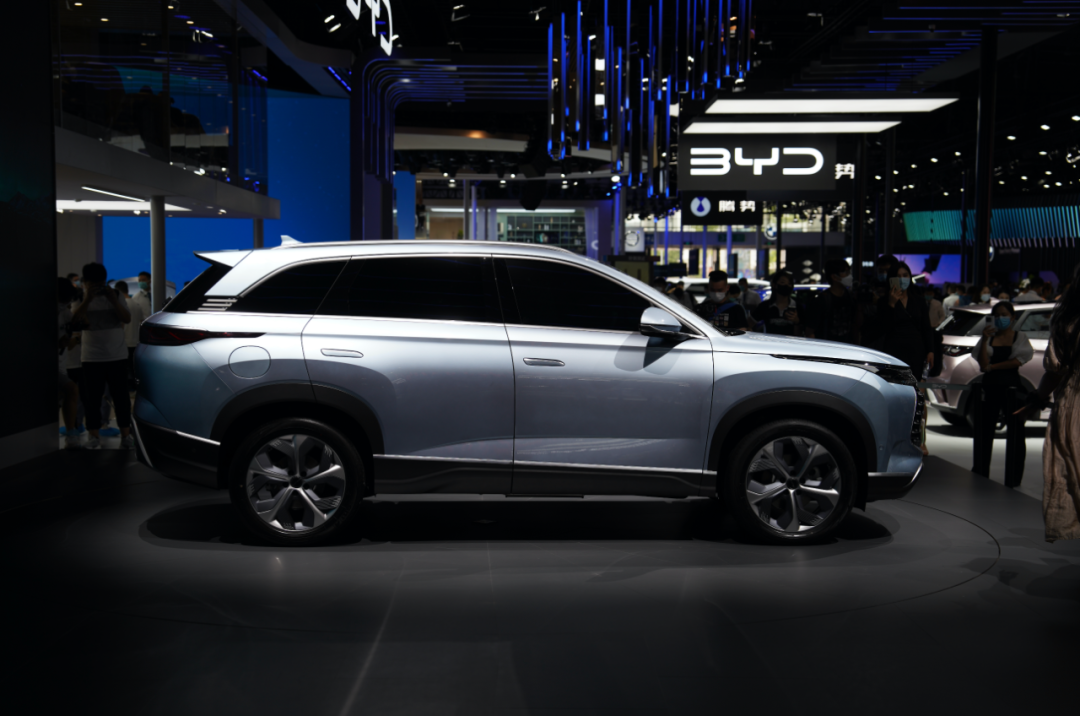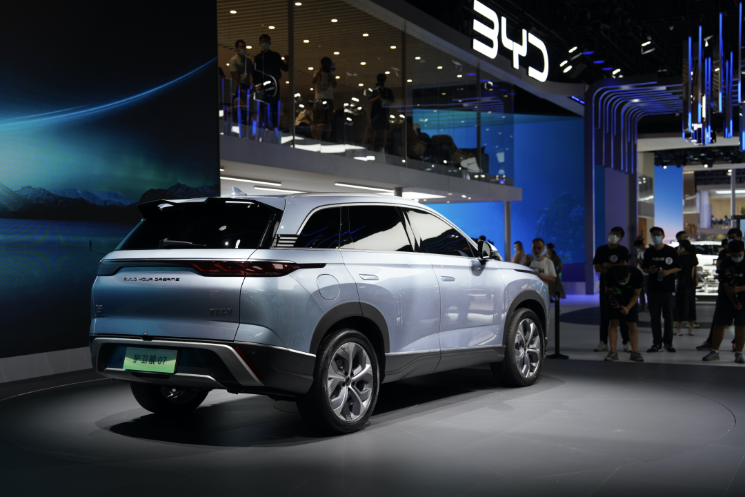 而正如驱逐舰05一样,在护卫舰07上我们也能看到一些更为硬朗的设计元素,比如凌厉的腰线以及富有肌肉感的前后轮拱。而下方塑料防擦条以及后保险杠上镶嵌的镀铬饰条则是通过上扬的方式,营造出一种向前俯冲的既视感,整个侧面所呈现出来的动感,要比尺寸相近的唐来得更强。