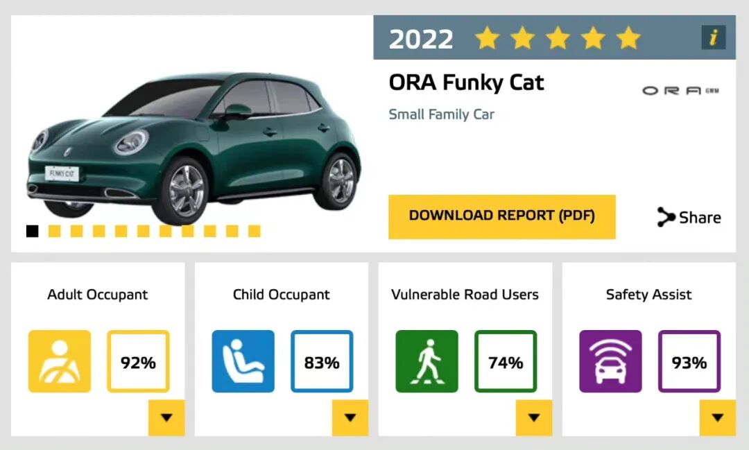 比较尴尬的是,在不久前长城还高调宣布自己卖到了欧洲市场的欧拉好猫,在E-NCAP的碰撞测试中获得了五星评价,谁知道一换到中保研就立马露了馅。