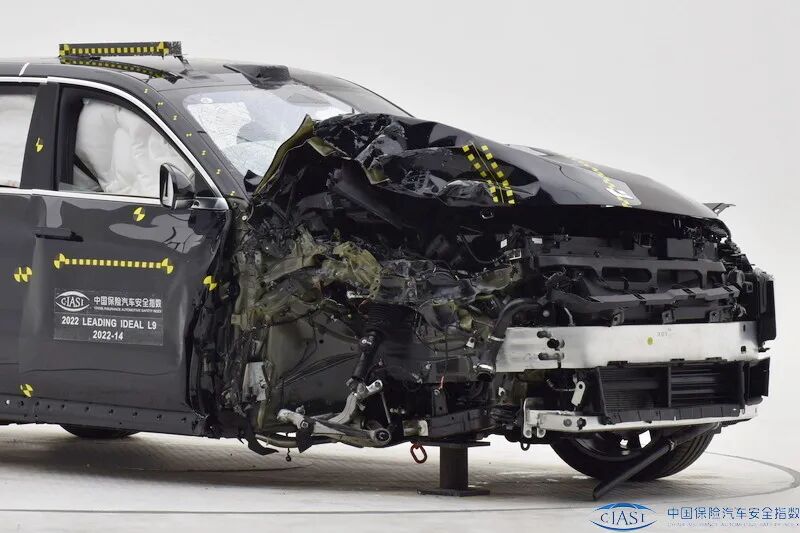就连新增的,针对车企“应试”行为的副驾驶侧25%偏置碰撞,L9的表现都是丝毫没有露馅。值得一提的是,之前坊间一直传闻L9的前悬挂有“参考”沃尔沃XC90的设计,而在实际碰撞的时候,虽然L9并没有像沃尔沃那样“丢轮保命”,但是轮圈依旧很好地规避了对防火墙的挤压。