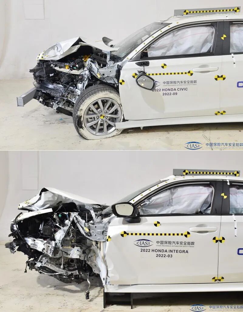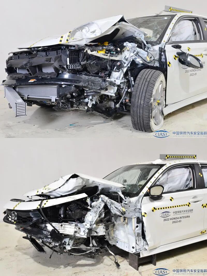 而与东风本田思域同为孪生车型的广汽本田型格,在测试中的各项表现也与思域基本保持一致。两车A柱完全没有形变,气囊气帘完全展开,防火墙的形变也被控制得非常好。