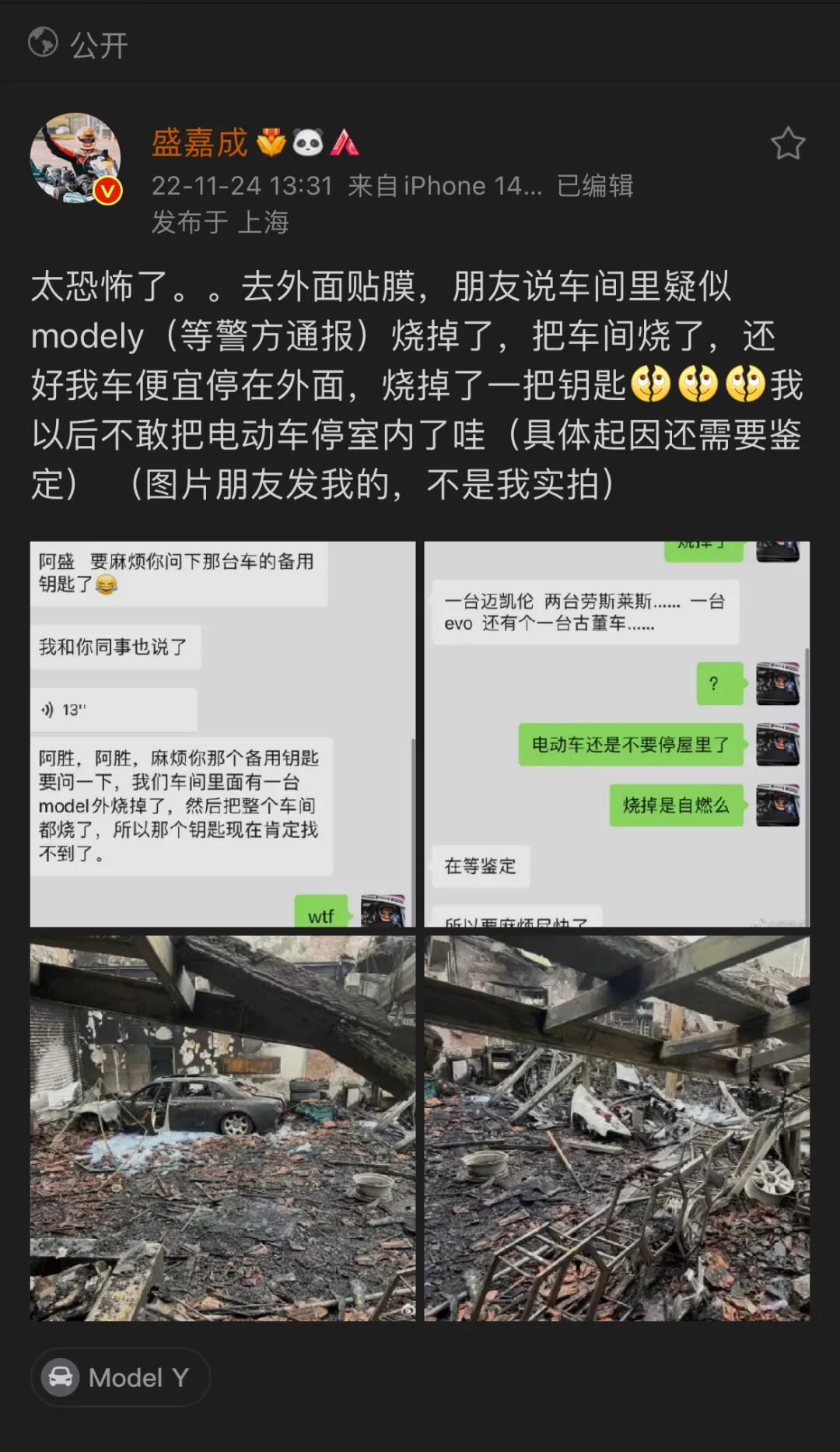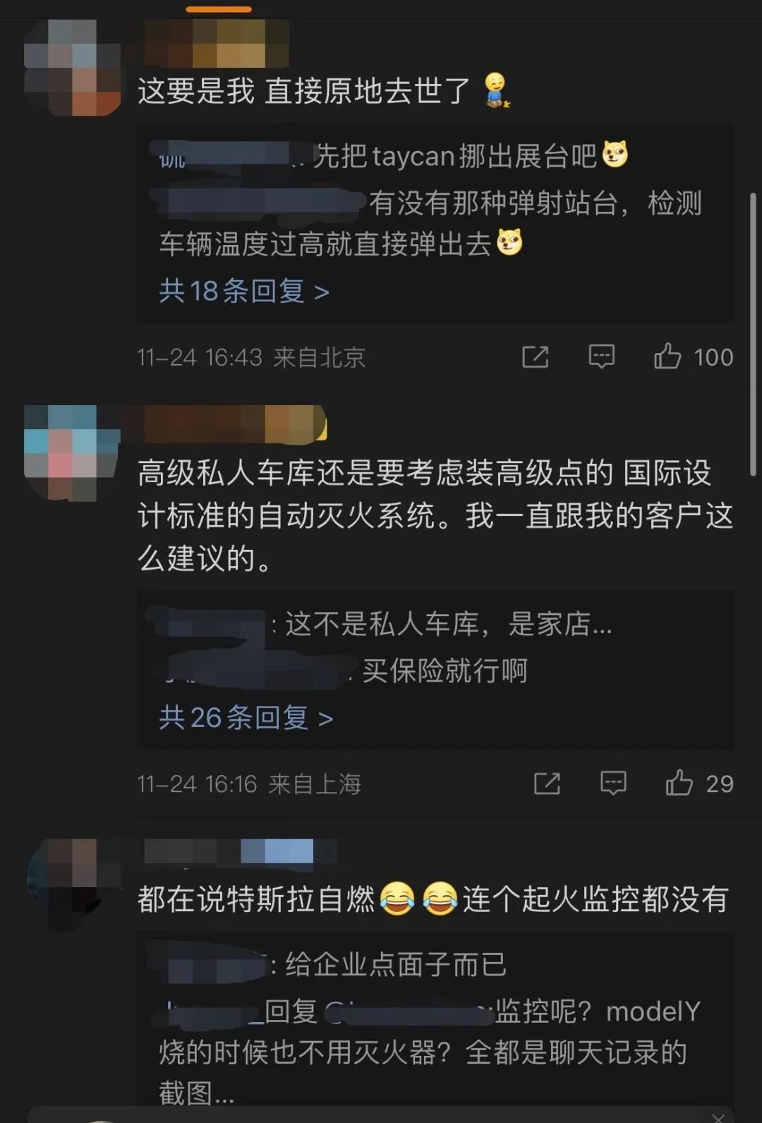 在这件事发酵以后,微博上不少有经营车房或者二手车买卖的博主都表示心有余悸,更有博主立刻把店里在售的电动车从展厅和车库里挪了出来。
