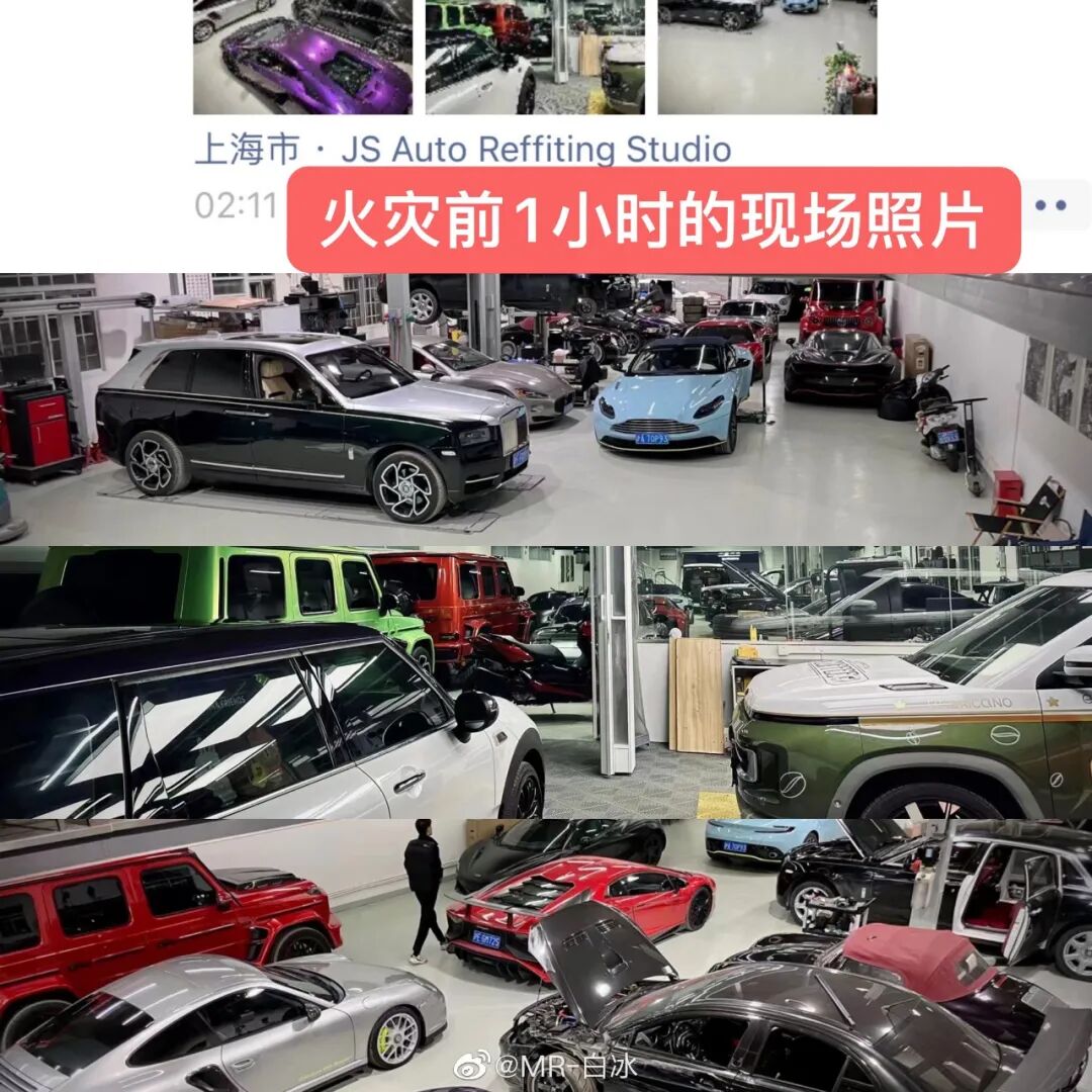从店家方面发布的火灾发生一小时前的车间画面,以及当事人的提供的信息中,我们可以判断当时的车间里除了有上述三位博主的三台车子以外,还有三台劳斯莱斯库里南、两台劳斯莱斯古斯特、迈凯伦720S、法拉利F12、三菱EVO、玛莎拉蒂、阿斯顿马丁、保时捷911外加一些极具收藏价值的古董车。