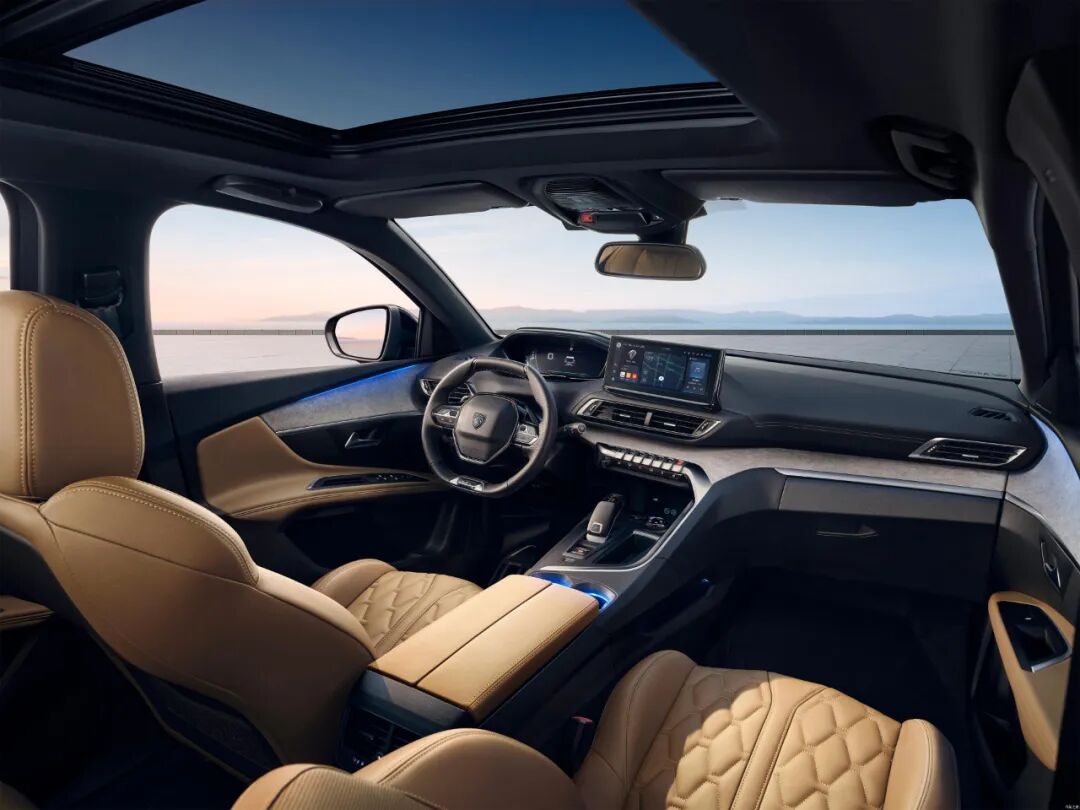 新款5008的内饰并没有太明显的变化,标致车型经典的小巧方向盘+环绕型中控的设计,单靠氛围就能赢得不少好感。液晶仪表随着改款,成为了全系标配的配置,车机也增加了对华为Hi-Car的支持。