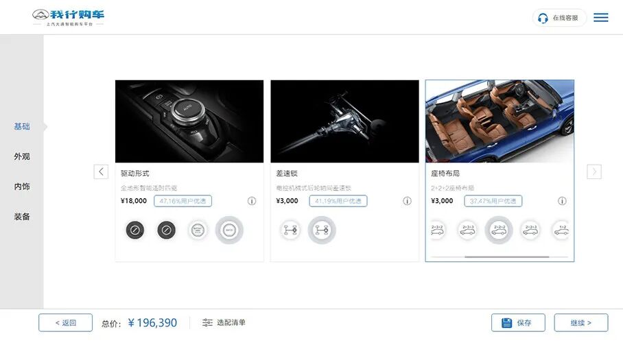 我还记得,那时候D90还开创性地玩起了C2B个性化定制模式,用户可以在官网按需选择车型的外观细节、座椅布局、动力规格、四驱种类等,在当时确实是给到大家不少新鲜感。我记得最清楚的是,当时D90居然有1+2的三座布局可以选择,能让这台硬派SUV化身为老板车。