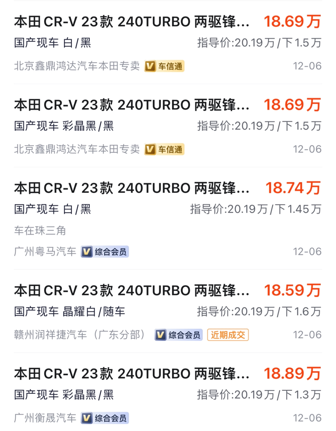 同时,在仅仅上市两个多月以后,CR-V的终端价格已经出现了不小的松动,在大部分地区都能有着10000元以上的现金优惠,部分渠道优惠幅度甚至超过了15000元。而上一代CR-V刚上市两个月的时候?别说优惠了,不加价都已经偷笑了。