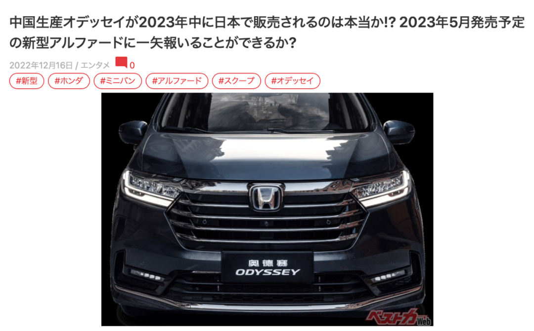 根据日本汽车网站BestCarWeb的报道,目前本田正考虑在2023年将广汽本田生产的奥德赛,以进口车的身份重新引进到日本本土市场进行销售。虽说,广汽本田的出口业务体量并不小,但是这将会是首次有日本汽车品牌从中国进口新车到日本市场进行销售。