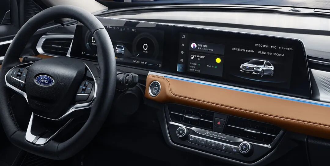 而新一代福睿斯改变,或者说进步最大的地方,肯定就是内饰了。借着大改款,长安福特为这款入门级车型增加了时髦的双联屏中控,仪表台上还多了不少仿皮以及金属饰板的装饰。值得一提的是,这个大屏幕以及氛围灯都是全系标配的。