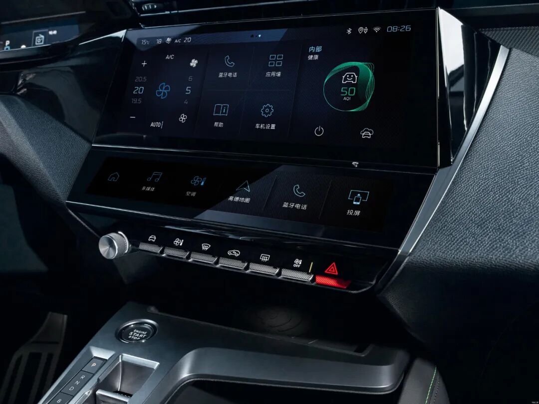 异形方向盘+悬浮式仪表台的设计在新车上得到了沿用,不过根据我们的经验,这个小巧的方向盘虽然能增加主观上的驾驶操控感,但是这个独特的仪表盘设计对于特定身高/臂展的司机而言,还是会存在一定遮挡风险的,建议买拥有类似设计车型的朋友,一定要亲身试驾。