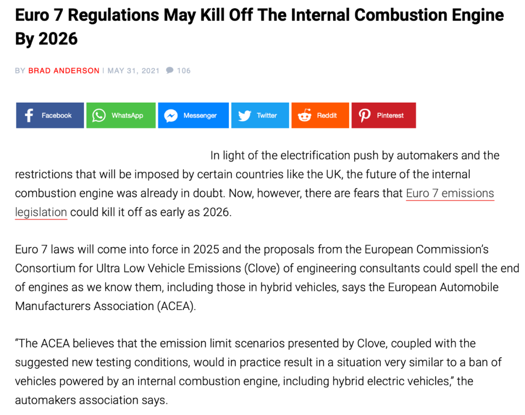 而更恐怖的是,虽然目前距离国6B的强制实施还有半年的时间,但是据海外媒体报道,目前欧盟已经开始在酝酿比我们国6B更为严格的“欧7”排放了。